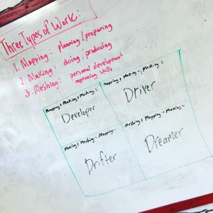 - Mapping + Making – Meshing = DRIVER (This type of student leader is great at planning and is equally great at doing, but lacks the ability to make improvements. They are overly confident and therefore struggle to listen to the ideas of others.